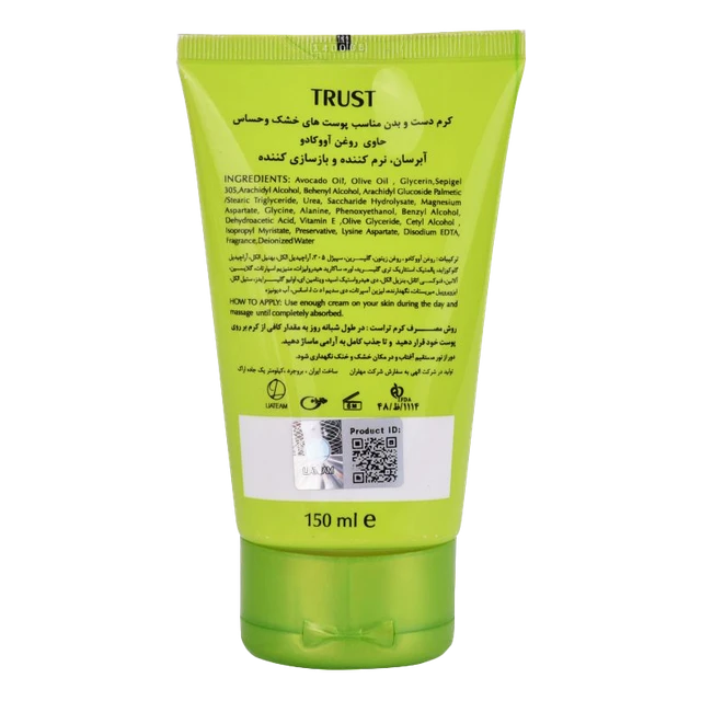کرم دست و بدن آووکادو تراست ، با دارا بودن روغنهای کاملا طبیعی و خالص آووکادو موجب افزایش نرمی و لطافت و یکپارچگی عملکرد پوست میشود. اثر نرمکنندگی کرم آووکادو تراست به گونهایست که پس از جذب، چربی از خود به جا نخواهد گذاشت. غنی بودن این کرم آووکادو از ویتامین E علاوه بر مهار رادیکالهای آزاد و جلوگیری از آسیبهای پوستی، موجب بازسازی پوست خواهد شد. همچنین کرم آووکادو تراست با کنترل التهابات پوستی، انتخابی مناسب برای پوستهای حساس است. از طرفی خلوص روغنهای مورد استفاده در این کرم آووکادو در کنار سایر مواد موثره بکار رفته شده در این کرم دست و بدن ، موجب رطوبت رسانی طولانی مدت به پوست شده که گاها تا ۲۴ ساعت دوام خواهد داشت.
