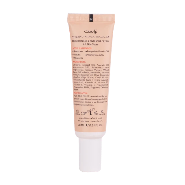 ترکیب روشن کننده در کرم روشن‌کننده و ضد لک تراست آنزیم تیروزیناز (آنزیم اصلی ایجاد لک) را به حرفه‌ای‌ترین حالت ممکن مهار کرده و این کرم را تبدیل به یک روشن کننده و ضد لک حرفه‌ای می‌کند.
