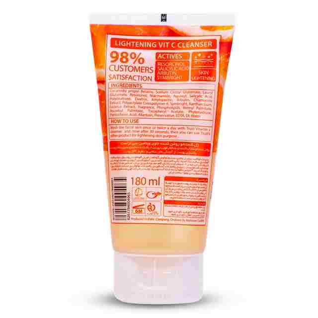ژل شستشو روشنکننده حاوی ویتامین سی تراست به خاطر داشتن مواد مؤثره ویتامین سی، رزورسینول، سالیسیلیک اسید، آربوتین و سیم برایت، پوست را روشن و شاداب ساخته و از آن محافظت میکند. همچنین ژل شستشو روشنکننده ویتامین سی یک پاککننده ملایم و عمیق منافذ پوستی بوده و پوست را از آلودگیهای سطحی پاکسازی کرده و میزان pH پوست را تنظیم میکند.