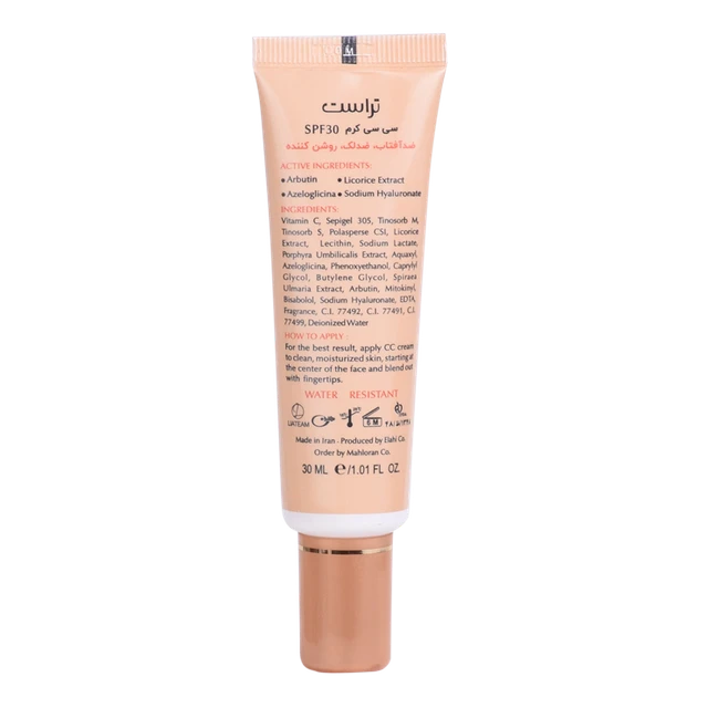 سی سی کرم پلاس تراست ، به طور اختصاصی به روشن شدن پوست و برطرف کردن جای جوش و لکهای پوستی کمک میکند. سی سی کرم پلاس شماره ۲ (بژ طبیعی) بهطور همزمان با آبرسانی پوست، از ایجاد لکهای جدید در پوست جلوگیری مینماید. ترکیبات آربوتین، میتوکینیل، ویتامین سی، نیاسینامید و آزلوگلیسین به صورت همافزا، از تولید رنگدانههای ملانین جلوگیری کرده و به روشن شدن و رفع لکهای پوستی کمک میکنند. عصاره جلبک در این کرم سی سی پلاس تراست باعث جلوگیری از ایجاد لکهای پوستی شده و همچنین وجود ترکیبات ضدالتهاب مثل عصاره گیاه اسپیرا اولماریا و بیزابولول در CC کرم پلاس ، التهابات ناشی از آکنه و سایر ضایعات پوستی را تسکین میدهد.