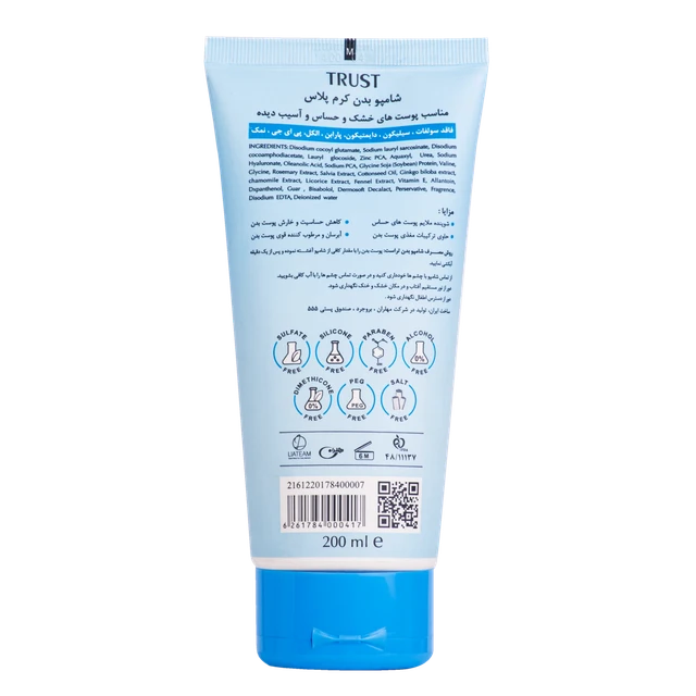برخی افراد به دلیل داشتن پوست بسیار خشک و حساس، نمیتوانند از صابون و شامپو بدن استفاده کنند و همیشه برای بهداشت شخصی خود به دنبال یک شوینده مناسب و تخصصی هستند. شامپو بدن تخصصی کرم پلاس تراست حرفهایترین شوینده تخصصی پوستهای خشک و آسیب دیده است. شامپو بدن تخصصی کرم پلاس علاوه بر شستشو، به دلیل استفاده از مواد موثره و مغذی کرمی، یک تغذیه کننده، مرطوب کننده و آبرسان بسیار عالی پوست بدن نیز محسوب میشود.