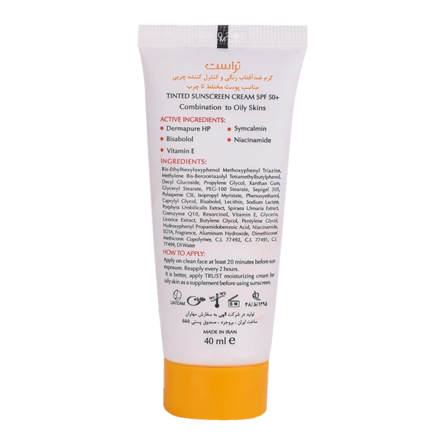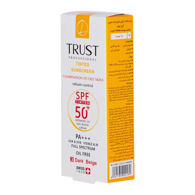 کرم‌های ضدآفتاب رنگی تراست با SPF50+ از مرغوب‌ترین و جدیدترین مواد اولیه موثره دارای حداکثر حفاظت دربرابر پرتوهای مضر خورشید ساخته شده‌اند؛ این کرم با وجود بهره‌مندی از بافتی سبک، دربرابر آسیب‌های وارده توسط نور خورشید به خوبی از پوست محافظت و با مهار رادیکال‌های آزاد از تخریب سلول‌های پوستی جلوگیری می‌کند. همچنین با مصرف این محصول، بدون بسته شدن منافذ پوستی و ایجاد خلل در تنفس سلول‌های پوستی، ضمن کنترل چربی، پوست‌تان آبرسانی می‌شود.