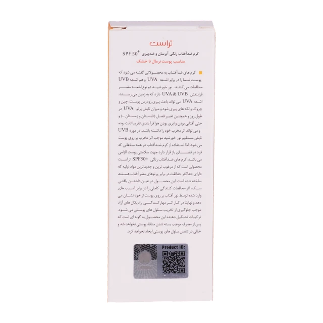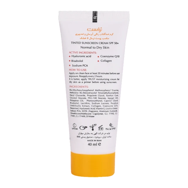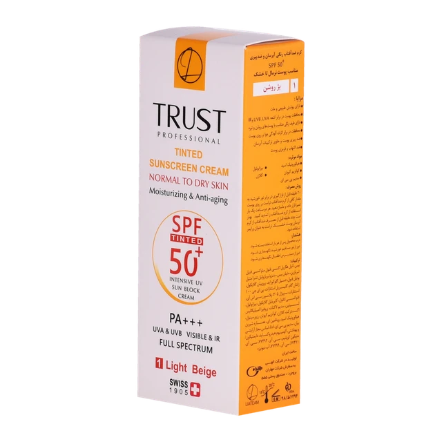 کرمهای ضدآفتاب رنگی تراست با SPF50+ از مرغوبترین و جدیدترین مواد اولیه موثره دارای حداکثر حفاظت دربرابر پرتوهای مضر خورشید ساخته شدهاند؛ کرم ضد آفتاب رنگی و ضد پیری بژ روشن پوست خشک تا نرمال با وجود بهرهمندی از بافتی سبک، دربرابر آسیبهای وارده توسط نور خورشید به خوبی از پوست محافظت و با مهار رادیکالهای آزاد از تخریب سلولهای پوستی جلوگیری میکند. همچنین با مصرف ضد آفتاب رنگی و ضد پیری بژ روشن پوست خشک تا نرمال ، بدون بسته شدن منافذ پوستی و ایجاد خلل در تنفس سلولهای پوستی، پوستتان آبرسانی میشود.