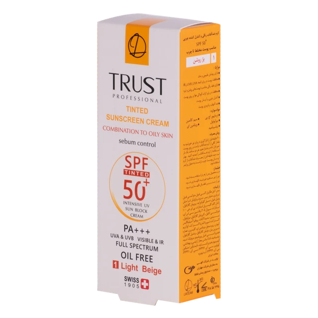 کرم‌های ضدآفتاب رنگی تراست با SPF50+ از مرغوب‌ترین و جدیدترین مواد اولیه موثره دارای حداکثر حفاظت دربرابر پرتوهای مضر خورشید ساخته شده‌اند؛ کرم ضد آفتاب رنگی و کنترل چربی بژ روشن پوست مختلط تا چرب با وجود بهره‌مندی از بافتی سبک، دربرابر آسیب‌های وارده توسط نور خورشید به خوبی از پوست محافظت و با مهار رادیکال‌های آزاد از تخریب سلول‌های پوستی جلوگیری می‌کند. همچنین با مصرف ضد آفتاب رنگی و کنترل چربی بژ روشن پوست مختلط تا چرب ، بدون بسته شدن منافذ پوستی و ایجاد خلل در تنفس سلول‌های پوستی، پوست‌تان آبرسانی می‌شود.