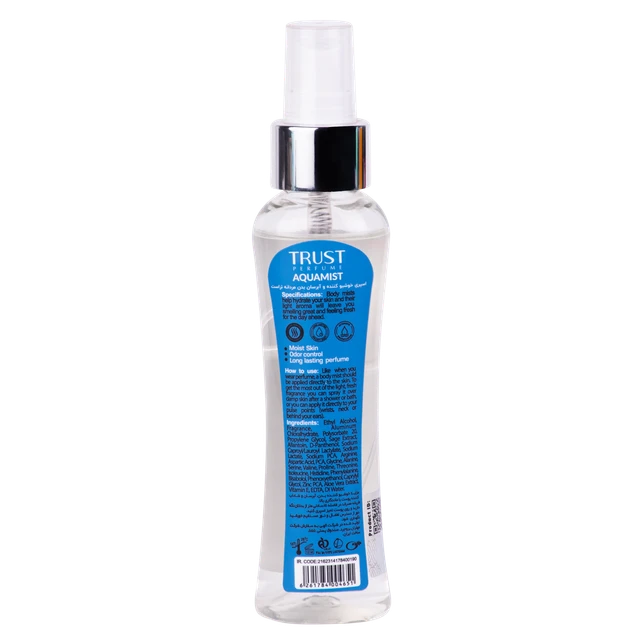 بادی میست مردانه تراست مدل Aquamist با گروه بویایی آروماتیک، تند تازه، سبز و چوبی در اختیار شما قرار می‌گیرد. با نت‌های اولیه از صنوبر، سرو و نعنا هندی، این بادی میست با یک شروع جذاب به شما خوش‌آمد می‌گوید. در نت‌های میانی، مریم گلی، شمعدانی، میخک و یاسمن با هم ترکیب شده‌اند تا یک رایحه فوق‌العاده را ایجاد کنند. و در نهایت، با نت‌های پایانی شامل سیب سبز، نعناع، اسطوخودوس، گریپ فروت و ریحان، این بادی میست تعادل خود را پیدا کرده و با یک رایحه دلپذیر، بویی خوشایند و دلچسب ارائه می‌دهد.