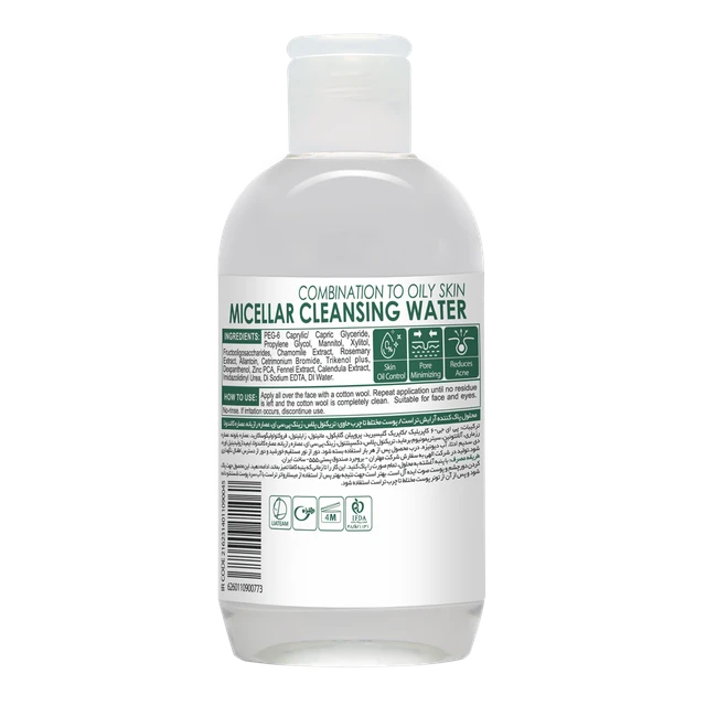 روش مصرف: برای استفاده از محلول میسلار پاک کننده آرایش (پوست مختلط تا چرب) ، کافی است یک پد پنبهای بردارید، کمی از محلول میسلار واتر را به آن آغشته کنید و با حرکات چرخشی یا ضربه ضربه، صورتتان را از آرایش و انواع آلودگیها پاک کنید؛ این کار را میتوانید تا زمانیکه پنبه تمیز است، تکرار کنید. از این محلول میسلار پاک کننده آرایش میتوان برای پاک کردن آرایش دور چشم هم استفاده کرد؛ در ضمن برای نتیجه بهتر میتوان پس از استفاده از میسلار واتر ، صورتتان را با آب سرد شستشو دهید.
