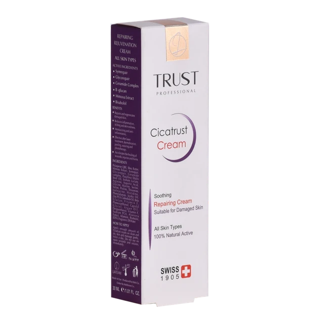 کرم ترمیم کننده انواع پوست تراست مناسب ترمیم پوستهای آسیبدیده و درمان انواع آسیبهای پوستی است. مواد مؤثره موجود در کرم ترمیم کننده مناسب انواع پوست تراست باعث تحریک به تکثیر سلولهای پوستی و ترمیم آسیبهای واردشده به پوست میشوند؛ این کار را نیز با افزایش انقباض عضلات اطراف ناحیه آسیبدیده، کمک به جمع شدن زخمها و بهبود سریعترشان انجام میدهند. وجود ترکیبات فعال گیاه براسیکای کرم ترمیم کننده پوست تراست ، از رشد باکتریها و قارچها جلوگیری کرده و از طریق اولیگوگالاکتومانان جلوی التهاب، قرمزی، خارش و سوزش پوست در ناحیه آسیبدیده را میگیرد. همچنین مصرف کرم ترمیم کننده انواع پوست تراست با داشتن ترکیبات فعال سرامیدی به آبرسانی پوست هم کمک میکند.