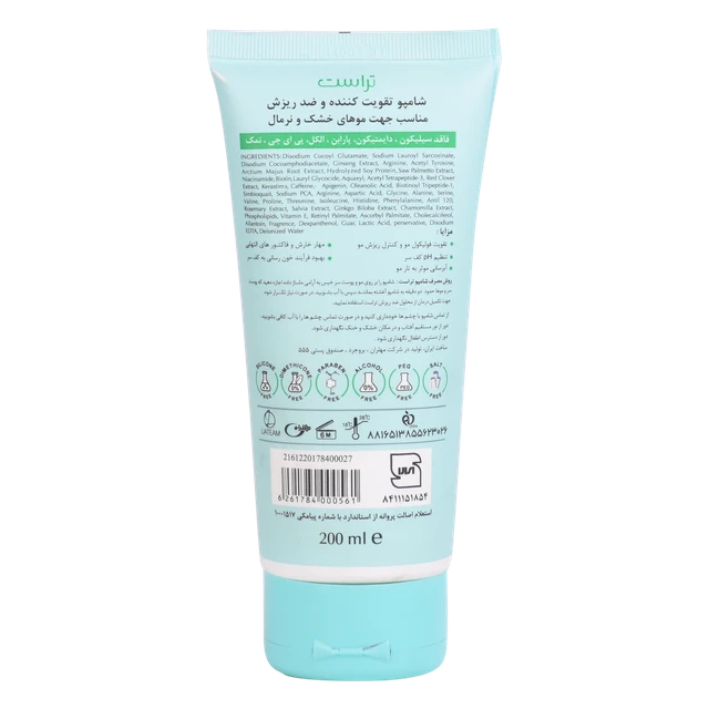 نحوه‌ مصرف: موهای مرطوب خود را به مقدار مناسبی از شامپو تخصصی ضد ریزش خشک و نرمال آغشته کرده و پس از 2 تا 3 دقیقه آب کشی کنید.