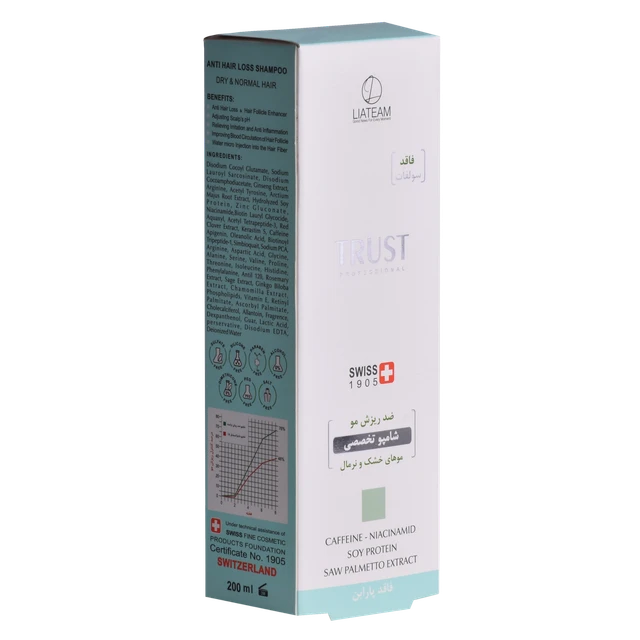 به تمام افرادی که مشکل ریزش موی جدی دارند و یا مستعد ریزش مو هستند توصیه می‌شود به همراه شامپوهای تخصصی مناسب جنس موی خود، از تونیک تخصصی ضدریزش موی تراست نیز استفاده کنند. شامپو تخصصی ضد ریزش مو خشک و نرمال فاقد سولفات در ترکیبات خود می‌باشد.