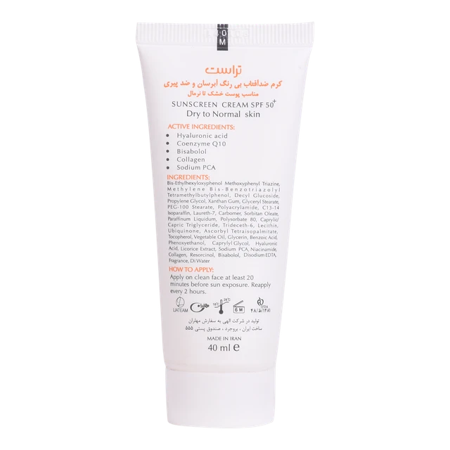 توجه: در ترکیبات کرم ضدآفتاب و ضدپیری تراست، از پارابن استفاده نشده است.