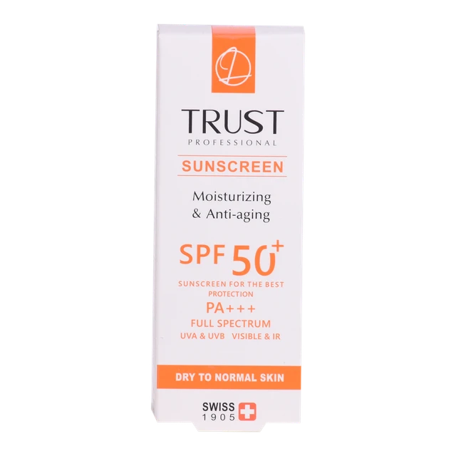 کرم ضدآفتاب و ضدپیری SPF +50 تراست، با استفاده از مرغوبترین و جدیدترین مواد اولیه همچون هیالورونیک اسید و کوآنزیم کیوتن از پوست شما دربرابر پرتوهای مضر آفتاب به طور کامل محافظت میکند. این کرم علاوه بر مهار رادیکالهای آزاد و محافظت از پوست دربرابر آلودگیهای محیطی، از تخریب سلولهای پوستی، بروز چینوچروک، پیری زودس و لکهای ناشی از آفتاب نیز جلوگیری میکند. این محصول بافتی سبک داشته و با قابلیت جذب سریع و آبرسانی قویِ پوست خشک و حفظ رطوبت آن، پس از مصرف منافذ پوستی را نبسته و هیچ خللی در روند تنفس سلولهای پوستی ایجاد نمیکند.