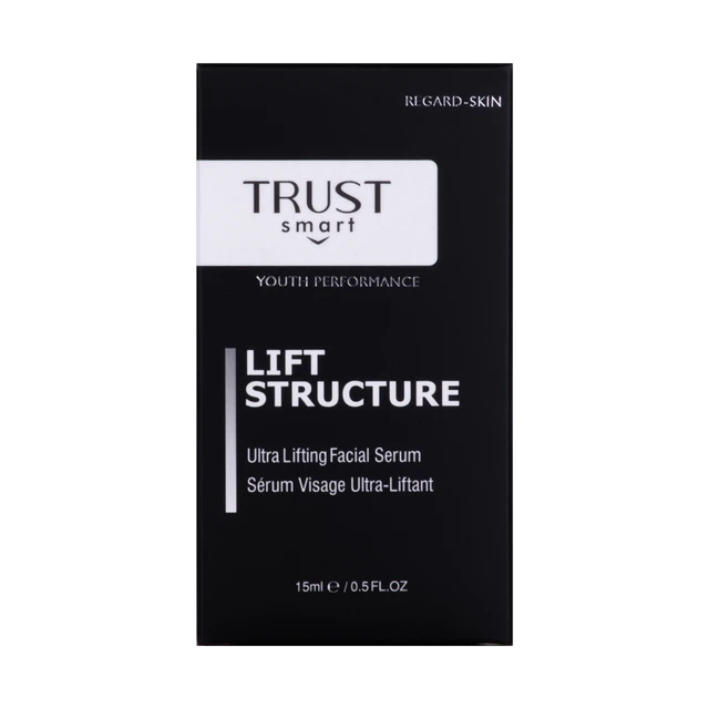 - سرم جوانساز، لیفت و ضدچروک تراست اسمارت محصولی آبرسان و از بین برنده چین و چروکهای پوستی است با داشتن ترکیبات فعال آنتیاکسیدان و مهار کننده پرتوهای UV مثل عصاره سلول بنیادی انگور، میتوکینیل، سیمدتوکس، هیالورونیکاسید، سدیم پی سی، آکواکسیل، گلوکونولاکتون، و توکوفریلاستات