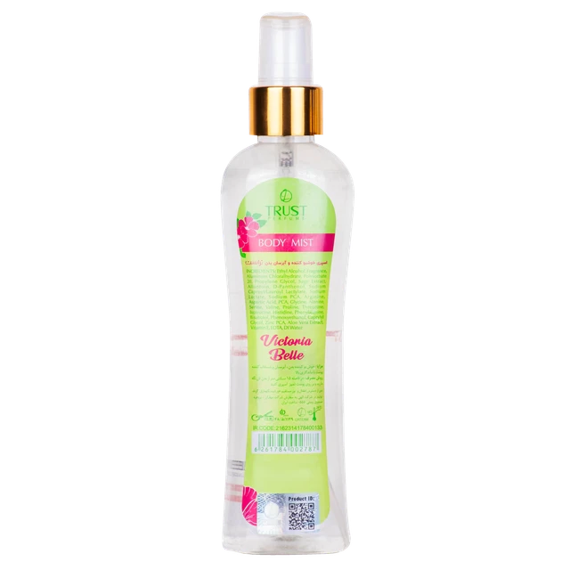 روزهای گرم تابستان را با رایحه خنک و شیرین بادی میست زنانه تراست مدل Victoria Belle ، معتدل و دلچسب کنید. هارمونی جادویی میوهای-گلی این محصول، برای بانوانِ جوانی مناسب است که دوست دارند نظرها را به خود جلب کنند. رایحه ابتدایی بادی میست Victoria Belle آناناس، نارنگی و توتفرنگی است که با یاس و سوسن و ارکیده تلفیق شده و در نهایت جای خود را به مشک و چوب صندل میدهد.
