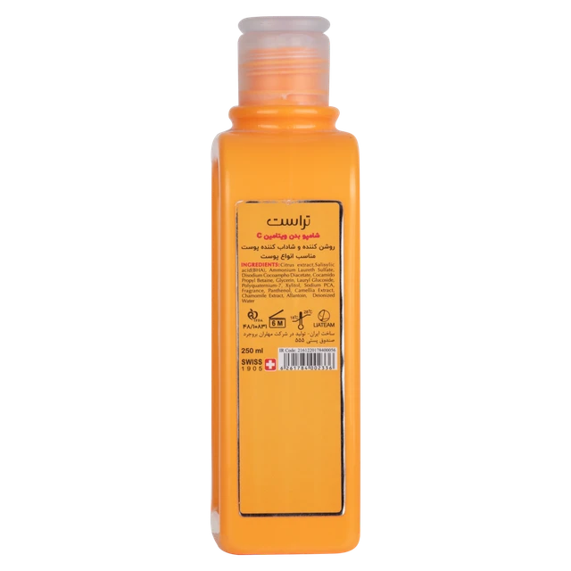 شامپو بدن ویتامین سی تراست همزمان کار چند محصول را انجام می دهد و ضمن شستشوی بدن، آن را آبرسانی و روشن می سازد و میزان تعرق بدن را نیز کاهش می دهد. شامپو بدن ویتامین سی تراست ، حاوی عصاره مرکبات و ویتامین C است که ضمن آبرسانی باعث کوچک شدن منافذ پوست و تقویت و درخشان شدن آن میشود. BHA موجود در این شامپو بدن، پوستهای مستعد جوش و آکنه را پاکسازی میکند. در نتیجه، پوست روشن و جوان میشود. تمامی افراد با انواع پوست میتوانند از شامپو بدن ویتامین سی تراست استفاده کنند.